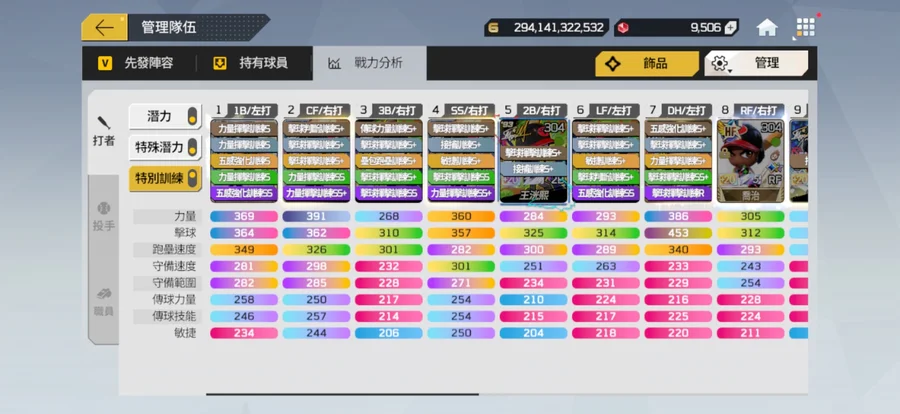 先發陣容也有配一組可打平衡的隊伍 (球員箱有1張LE+20廖敏雄)