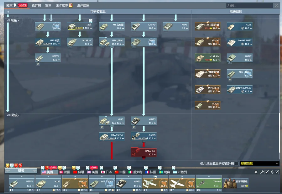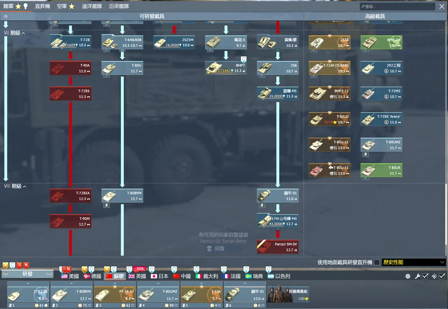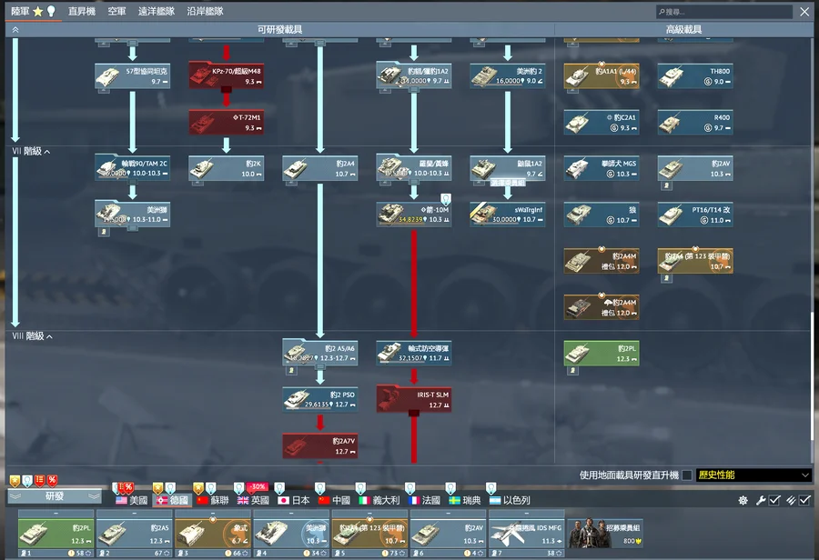 飛機的話美蘇英中瑞都有一台9.0以上金機(德國有台11.0非金機)其他沒有或低階