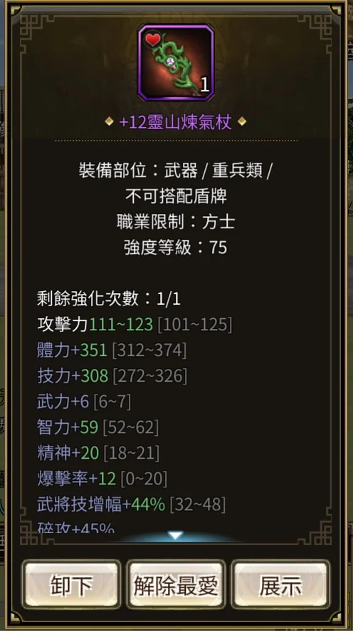 武器+12%靈山練氣杖 搭配八面化身 打王殺人都超強 課長必備