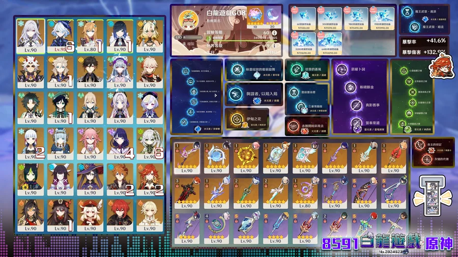 【女、60等、57金角、17金武】G8 少女0+1絲柯克0+1水神6+0草神6+0雷神4+1火神希諾寧奶奶愛可菲