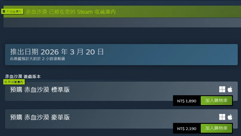 赤血沙漠預購特典獎勵預計於2026年3月20日(五)17:00後公告並提供,