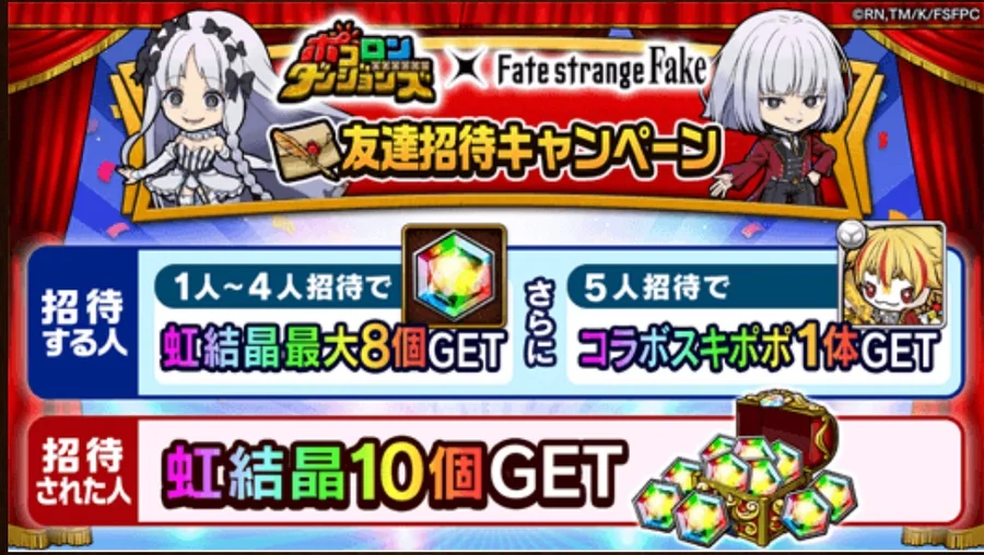 推薦號5位,共可獲得8顆虹結晶+Fate/strange Fake專用技能波波一隻