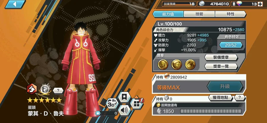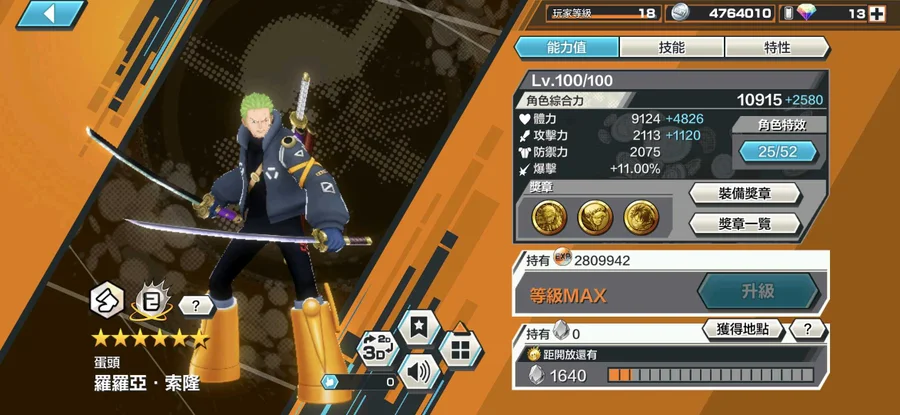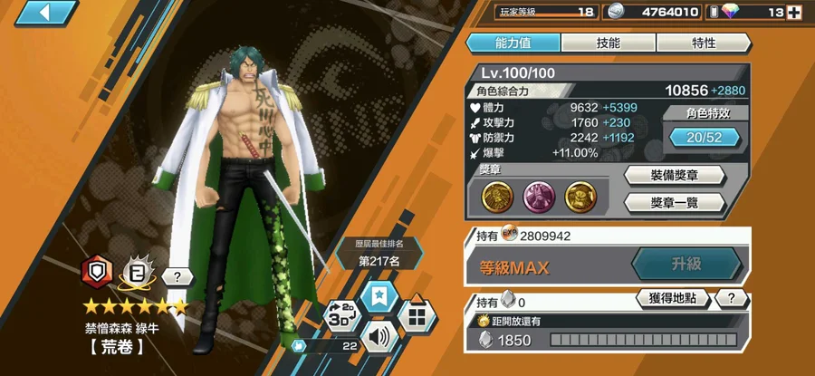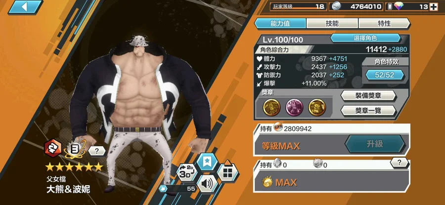 【初始號】特四熊妮(獎章已配好),金碎4200,綜合力52000