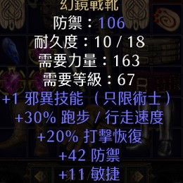 S13術士新天梯 邪異 怨靈步伐 幻境戰靴 (術士高傷鞋子) 回響打擊