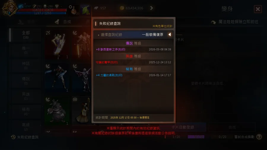 刻印裝:+5狂龍力量腰帶+2變形怪項鍊+2不死鳥+7金翅+9真細劍