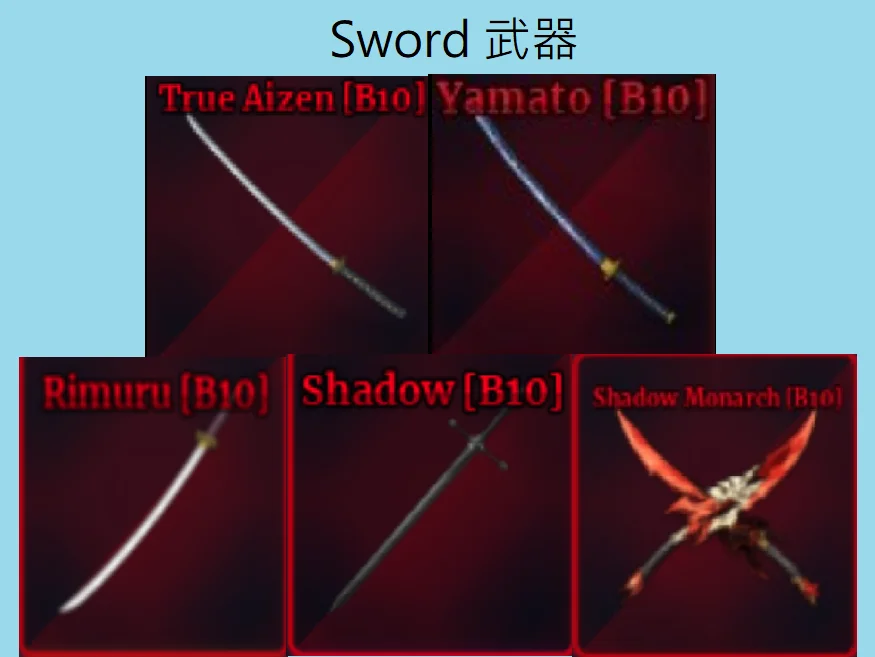以下為(Sword)武器套組素材 (不包種族 稱號 氏族)