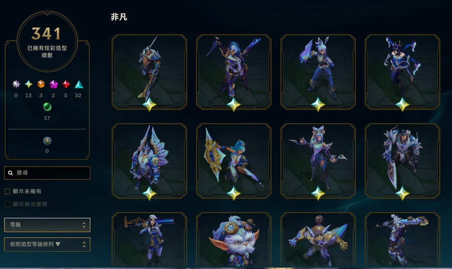 如題 近全造型 看造型量就知道 1792 1超凡阿璃 3非凡 奧術Jinx、魔鬥、賽特