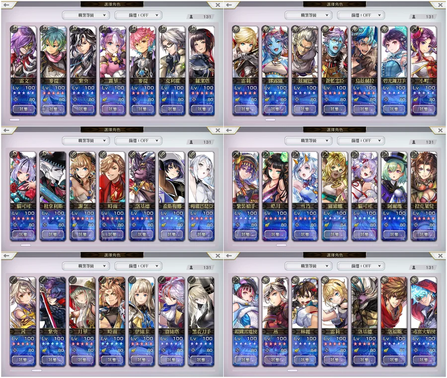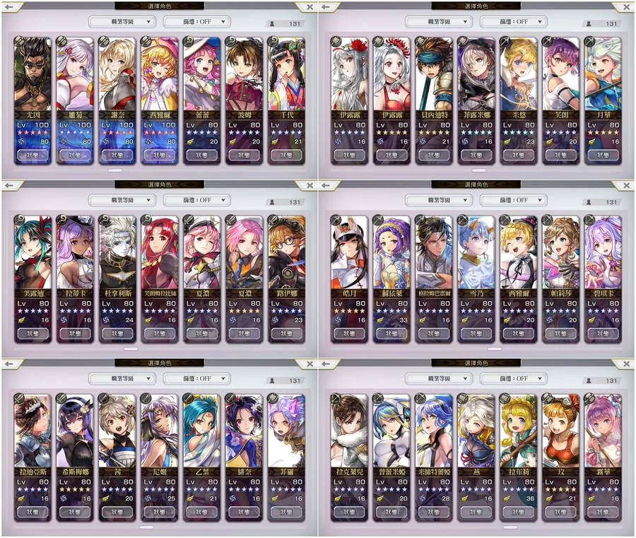 免費角:6(除主角群外,其餘皆未領)