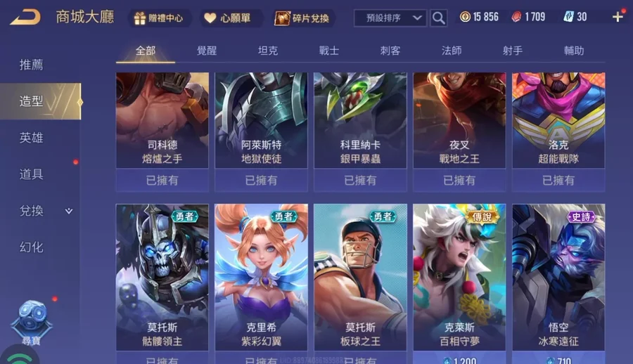 傳說對決台服帳 初始號 入坑號 33英雄28造型 有90奧義上號直接玩 無綁定可改密 garena登入 安卓蘋果都可以
