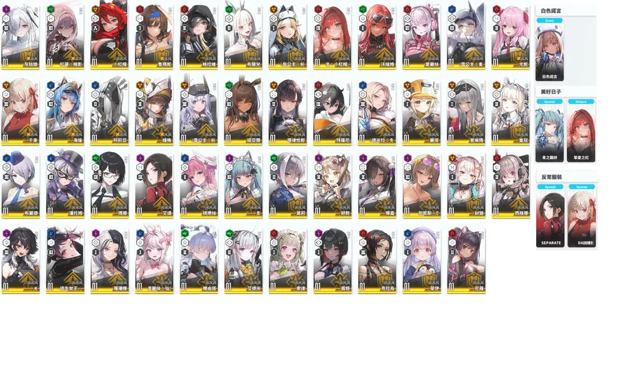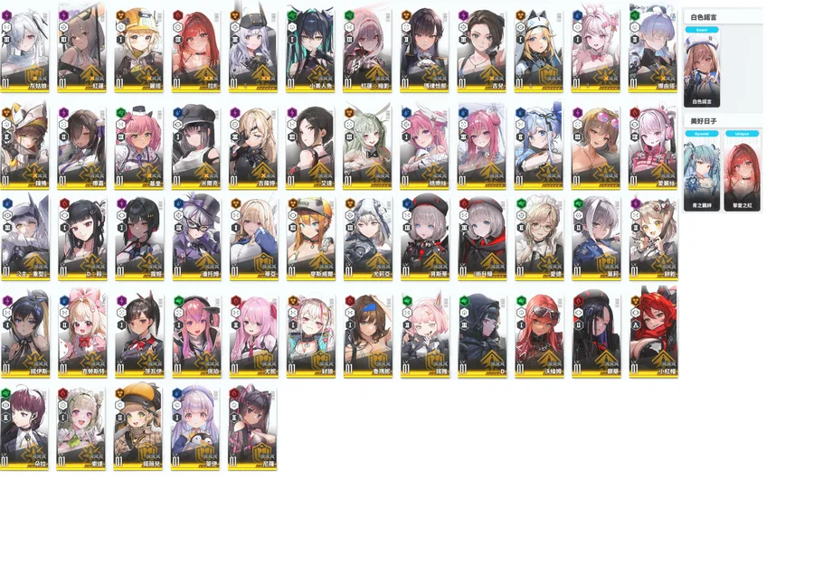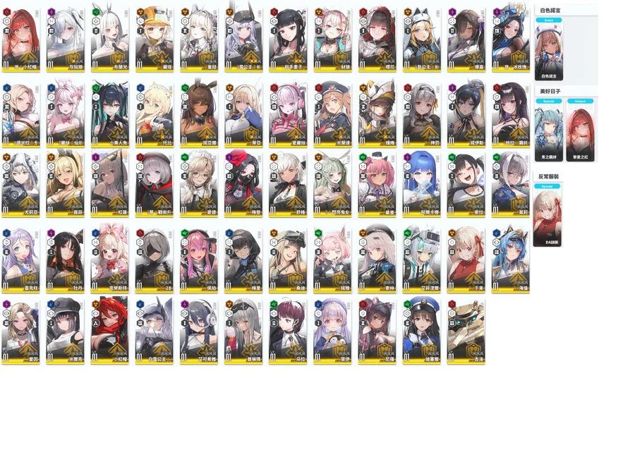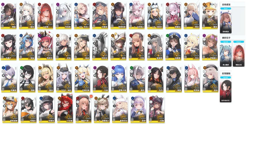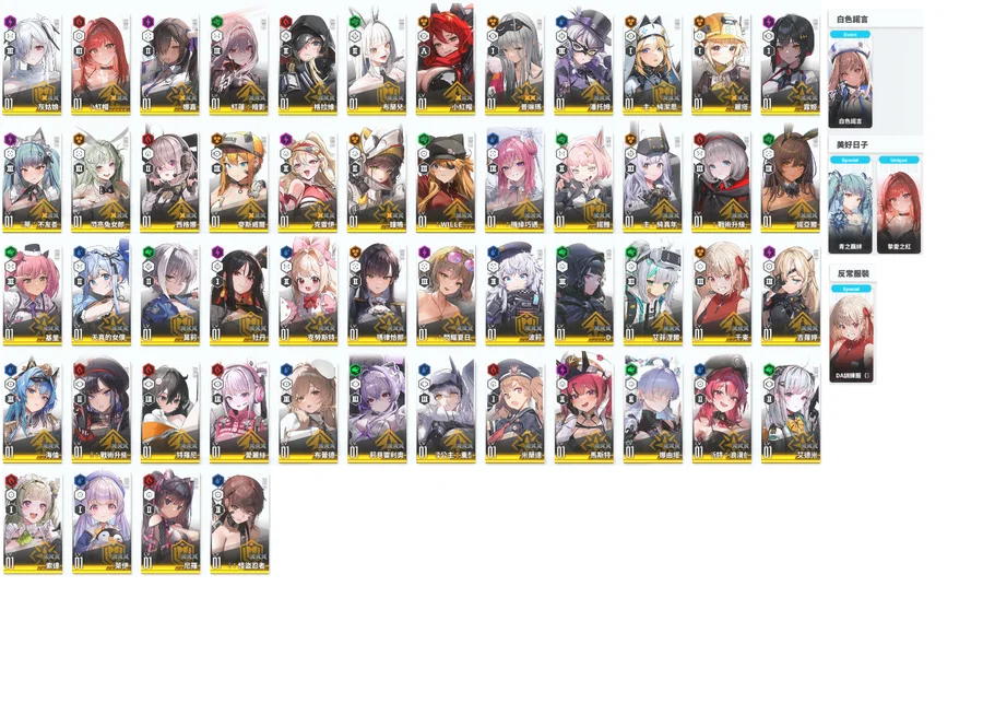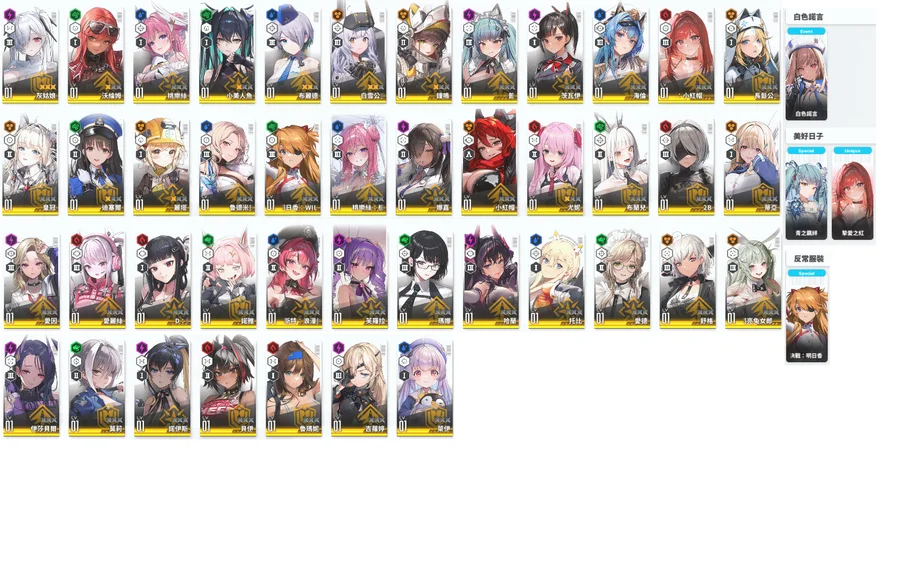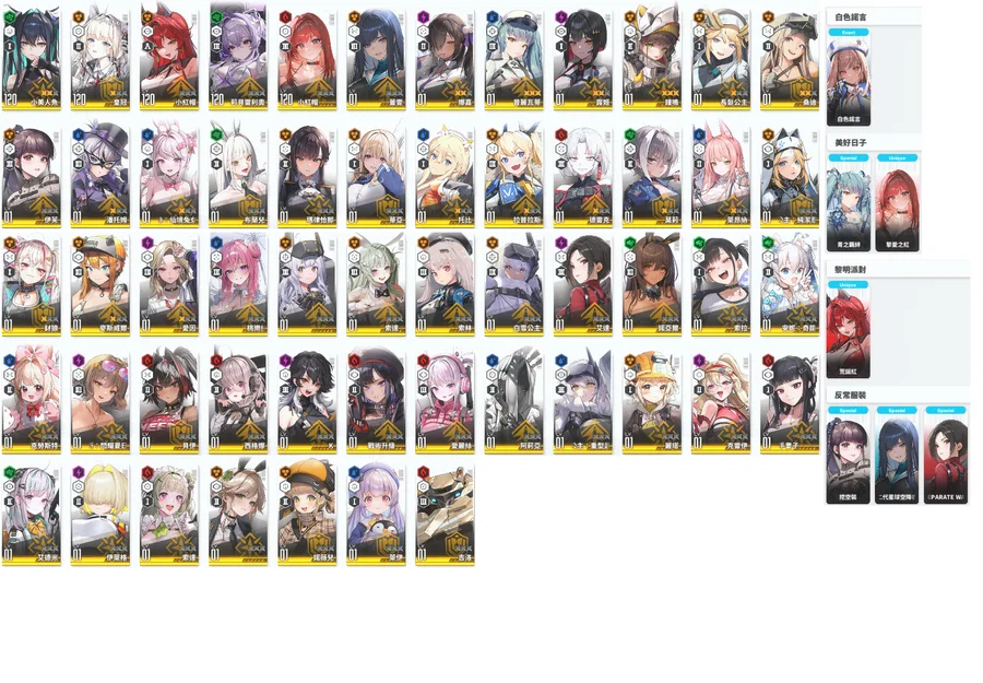 淺灰=超標準 淺藍=朝聖者 淺橘=限定角 淺綠=聯動角