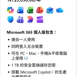 🔥包含 Word、Excel、PowerPoint 等 Office 應用程式,支援 5 台設備。
