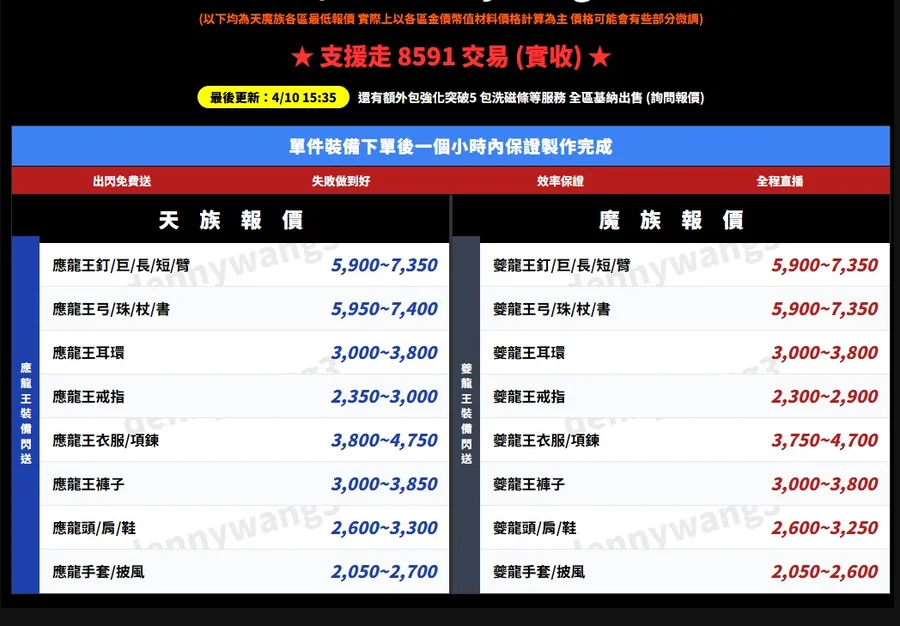 全區 應龍/夔龍王裝備製作 各區都有 下單一小時內火速安排製作 挑戰全場最低