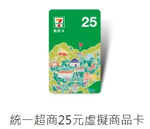 統一超商25元虛擬商品卡x5張
