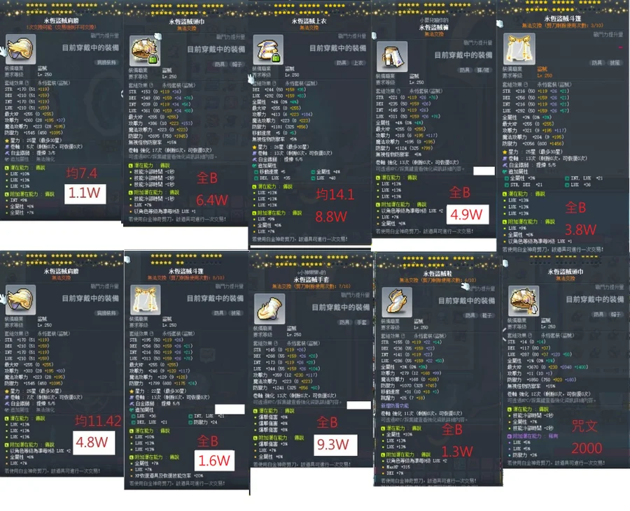 永恆盜賊手套9.3W 26C白5全B大六排主三爆附加3 7 6