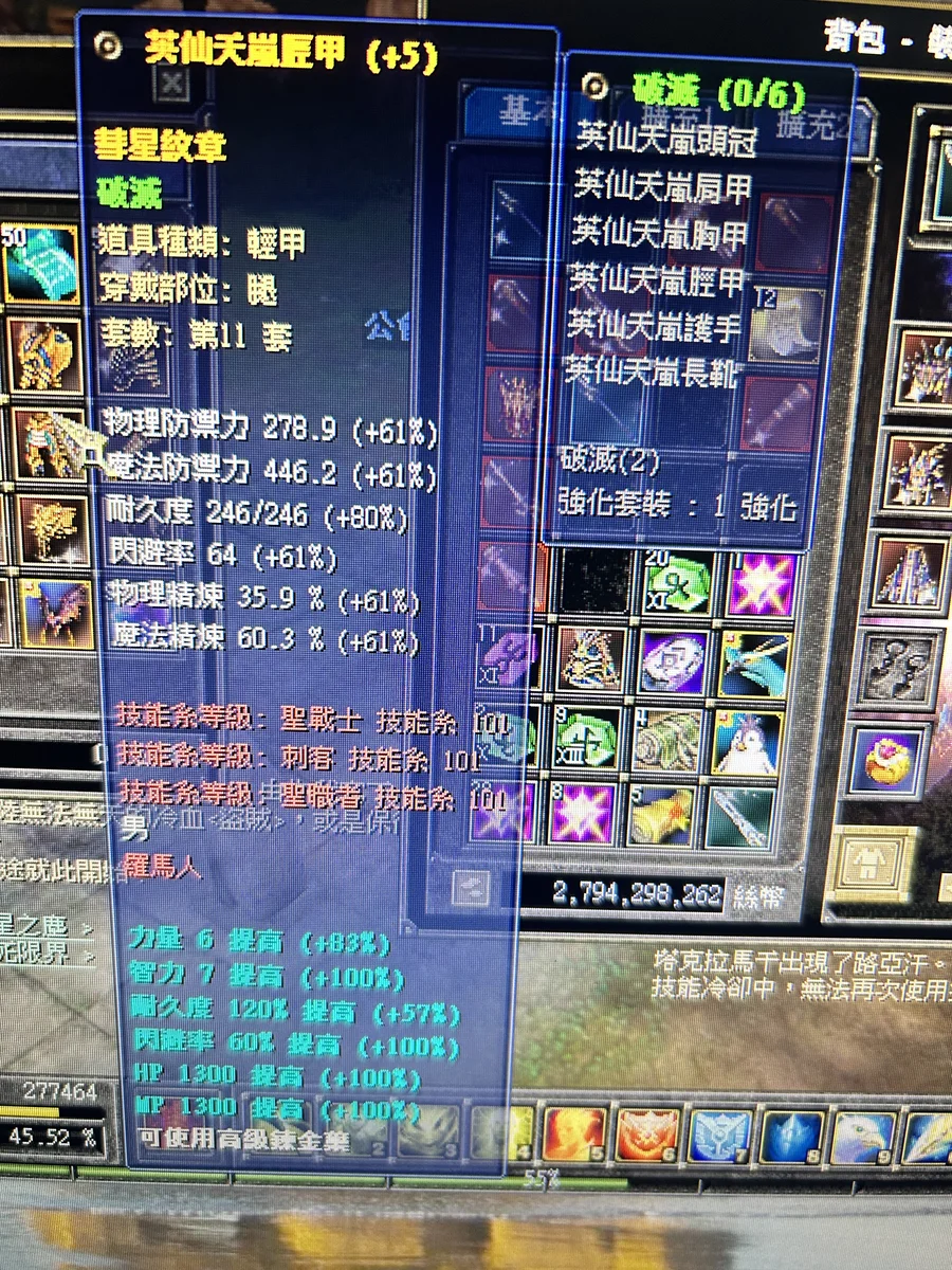 賣11套破滅羅馬輕甲 整套藍白字洗好 數值優 整套 600元 可直接下標