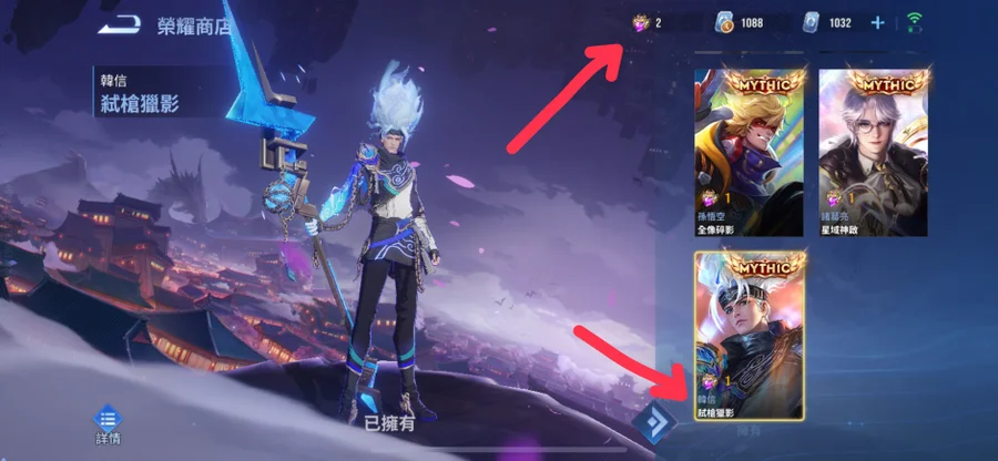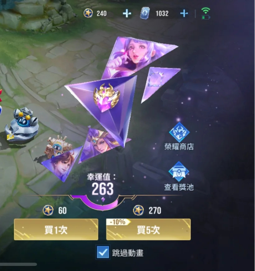 榮耀水晶還有兩顆,可兌換自己心儀的造型