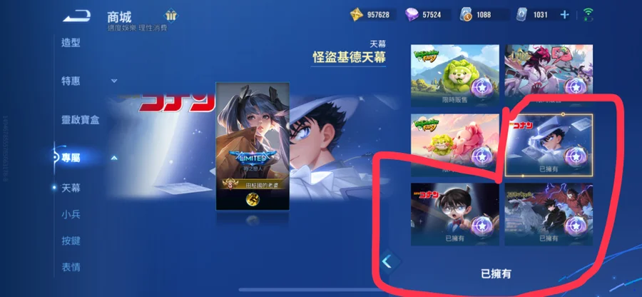 點券剩約1000出頭、限時點券1088
