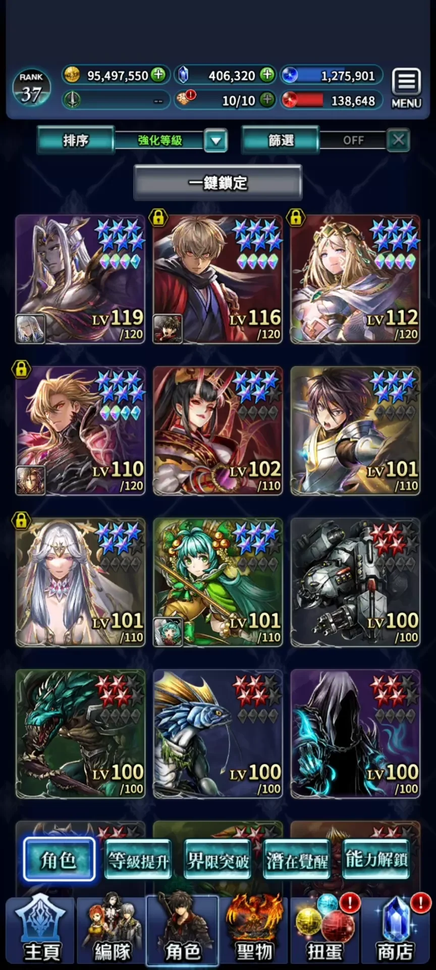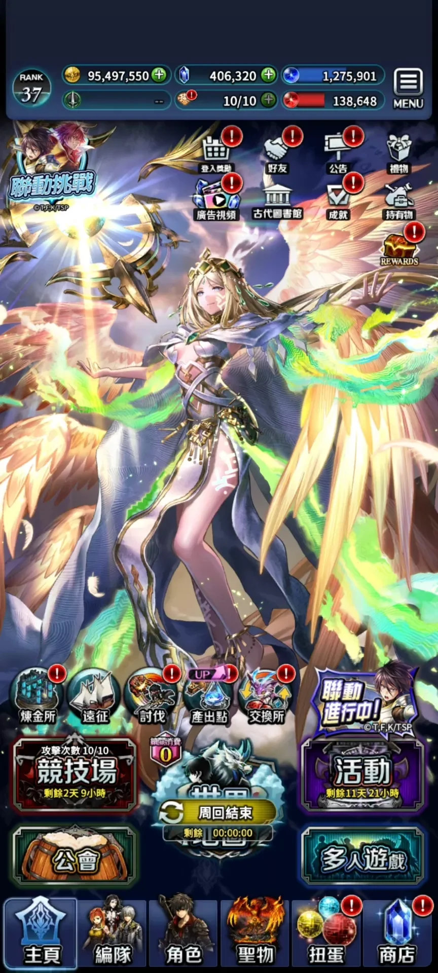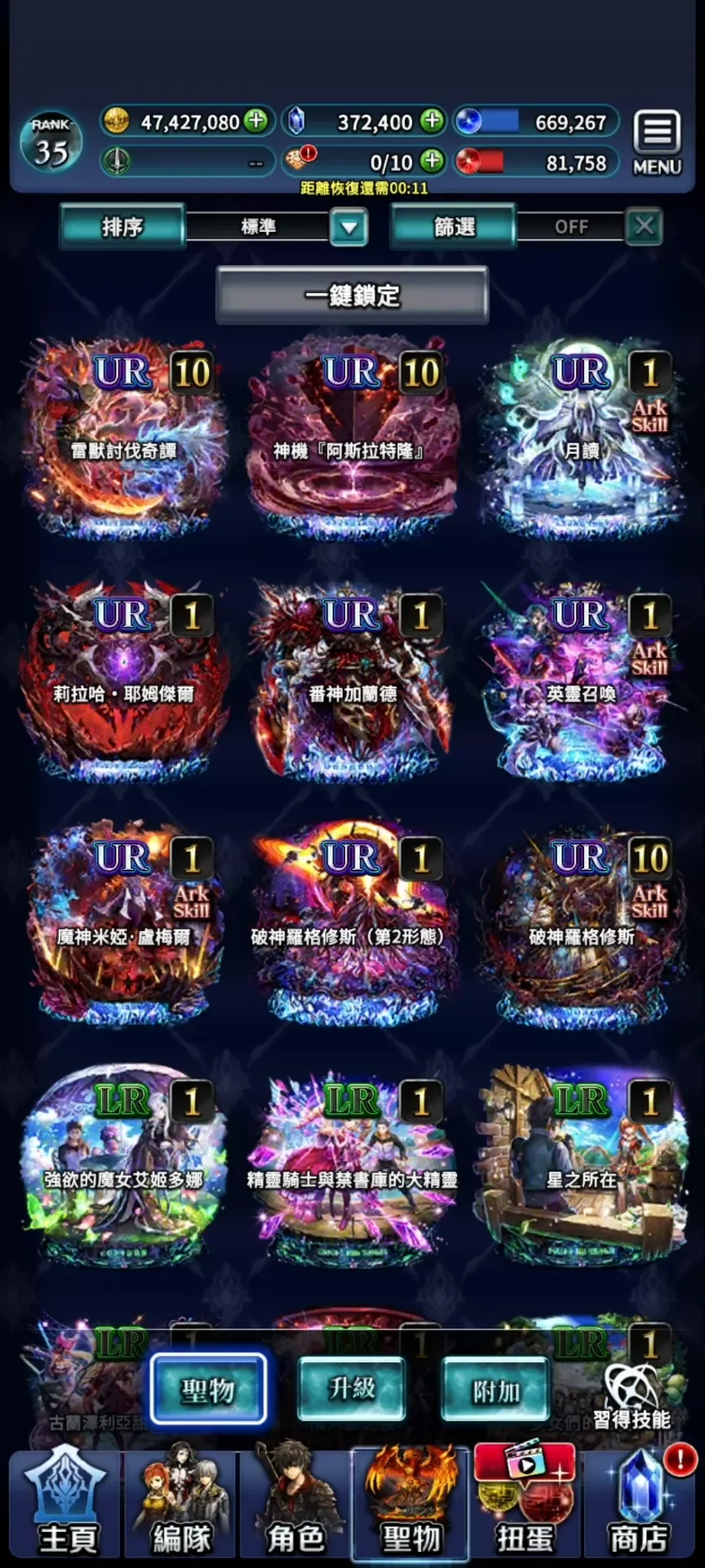 9UR,新破神,新聯動,T0天照+氪金裝,魔人+氪金裝。女神,主角。