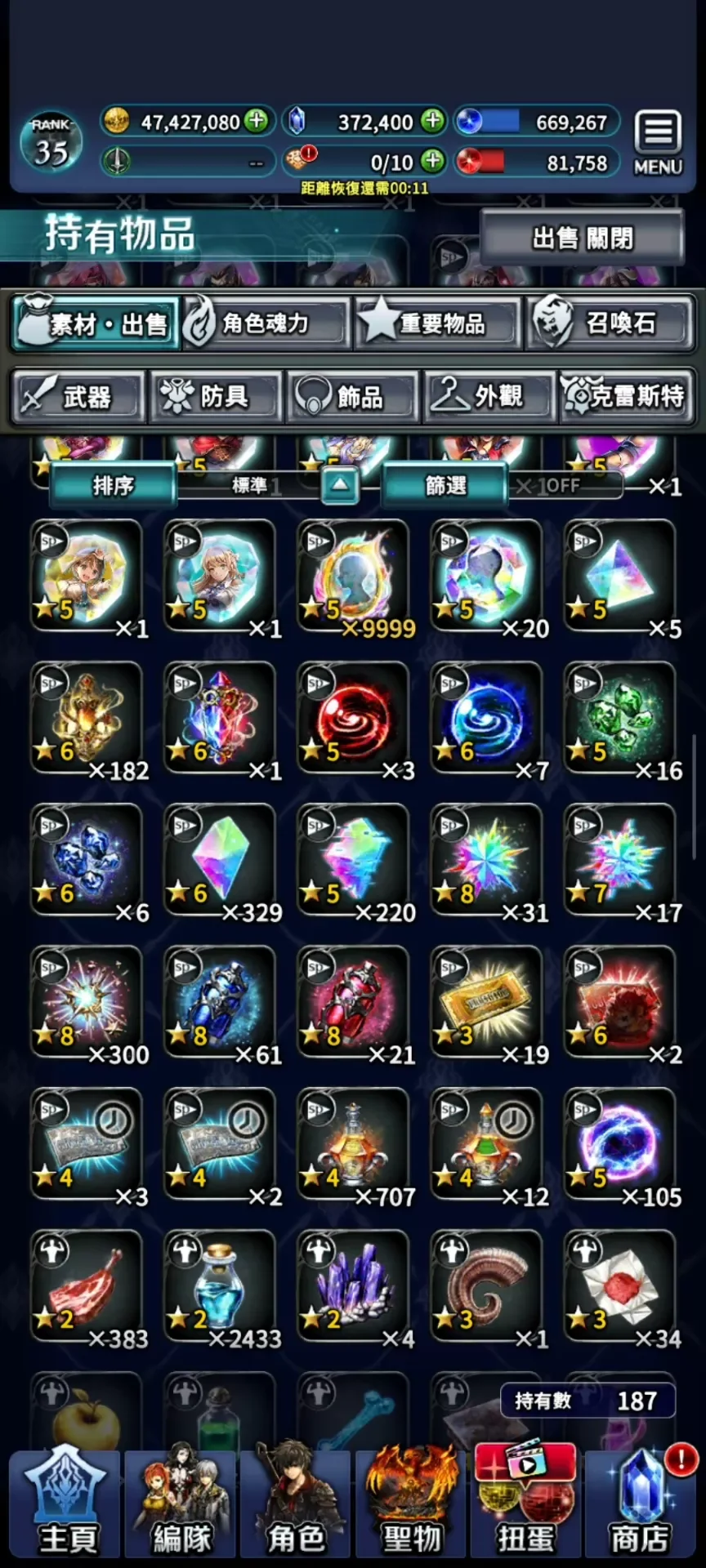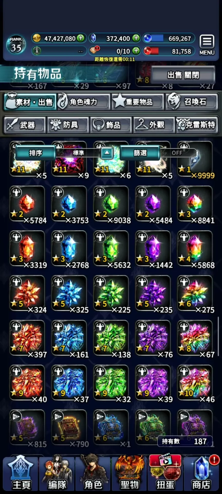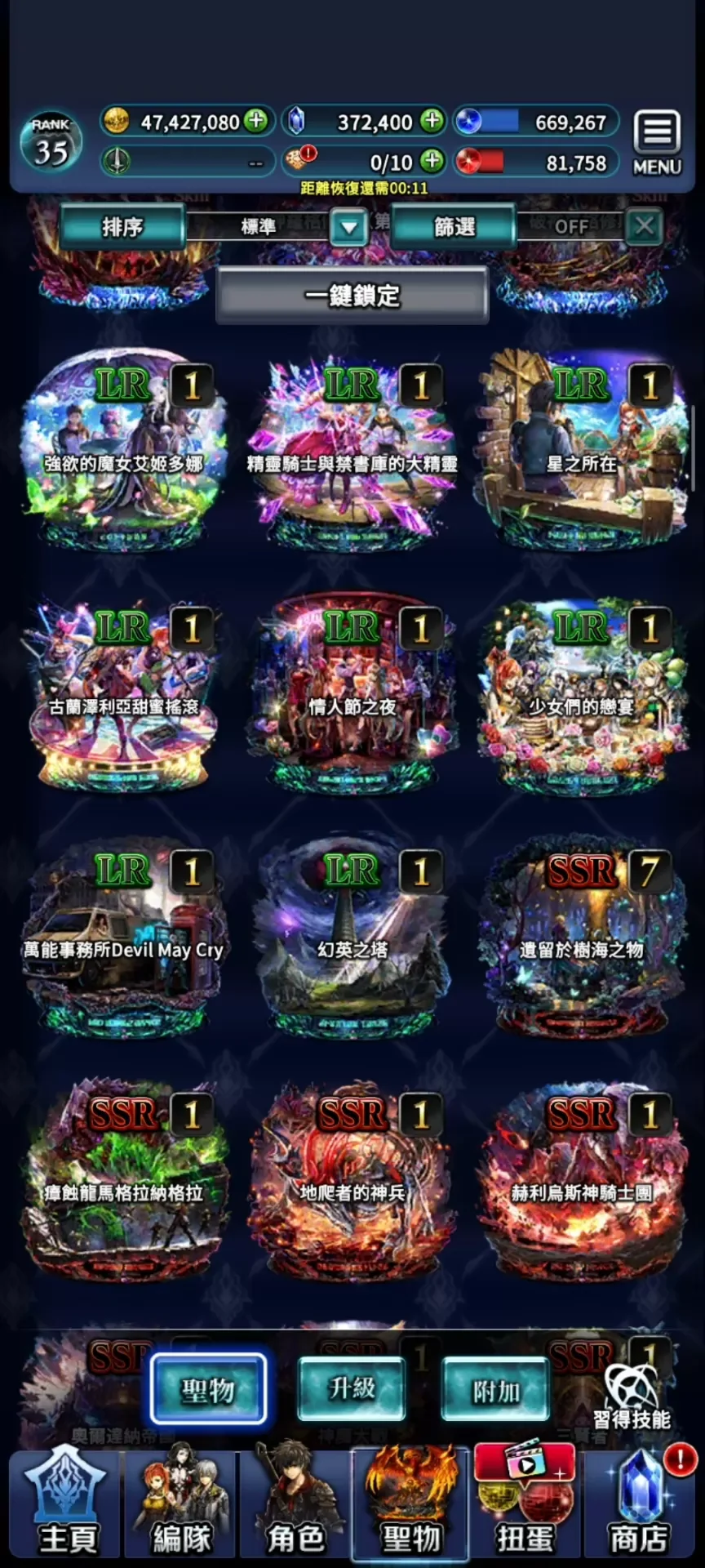 鑽石410000。紅鑽3.6萬,能換好幾套專屬裝了。進度普通打完,困難,超難還有很多鉆可挖。材料很多。