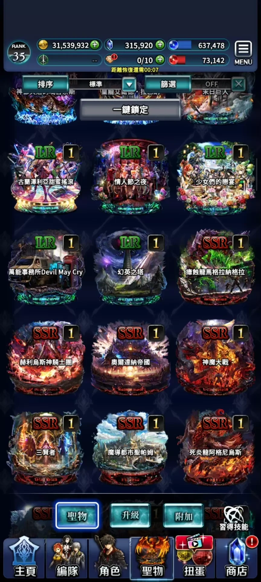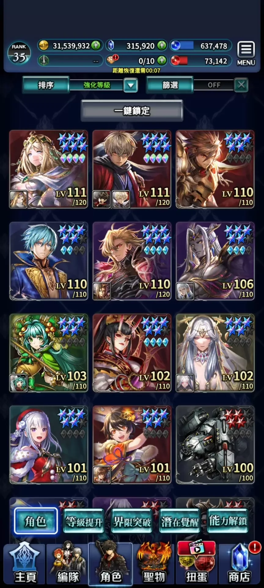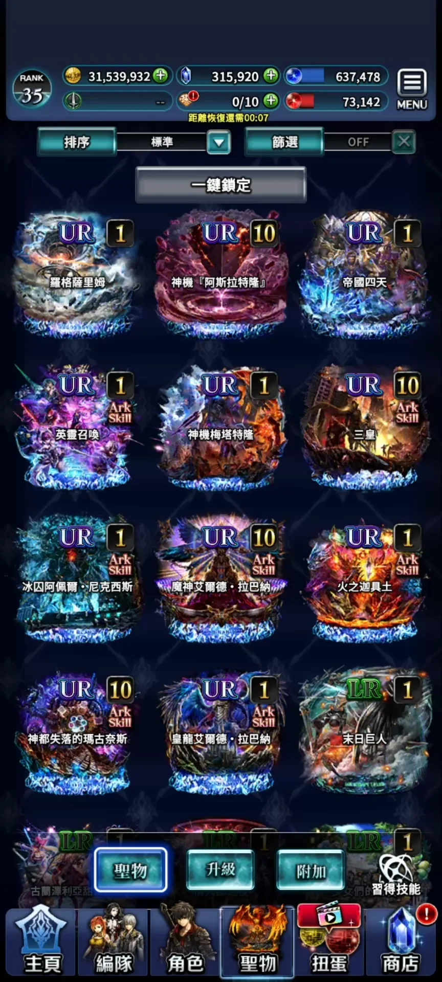 11UR,紫魂石。35萬鑽 。新破神+UR,T0天照,魔人,雷尼,阿迪爾,主角