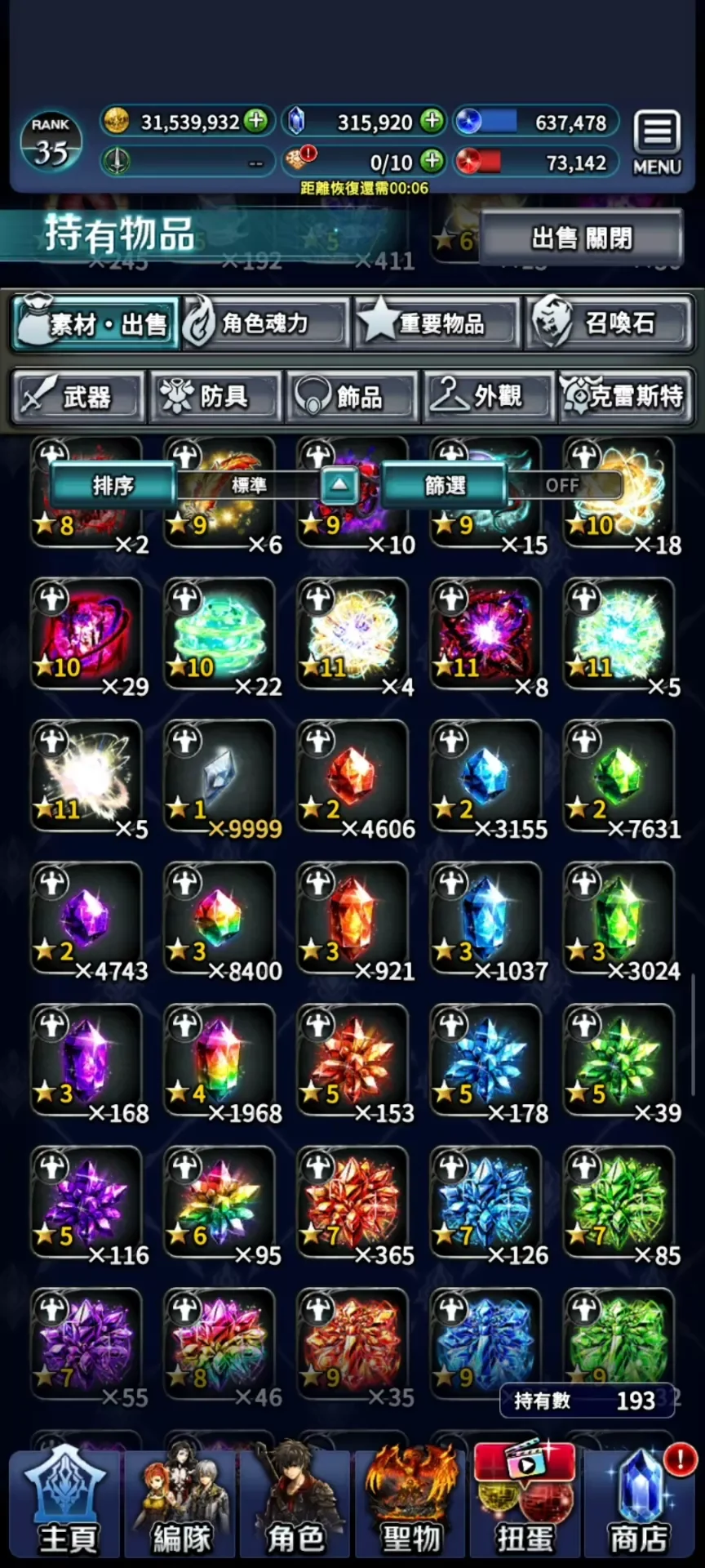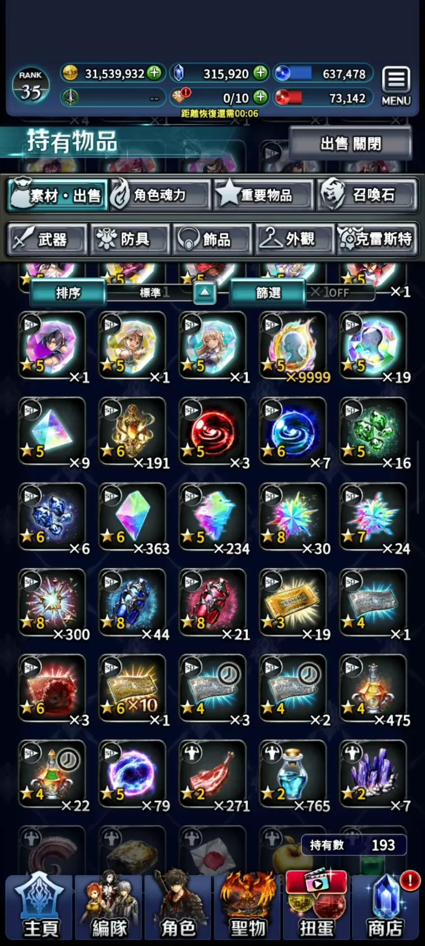 氪金裝好幾套。紅鑽 近2萬,能換好幾套專屬裝了。進度普通完,困難,超難還有很多鉆可挖。材料超多
