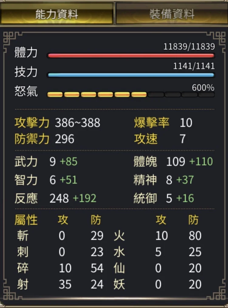 屬防:火防80% 碎防54% 屬防全衝好