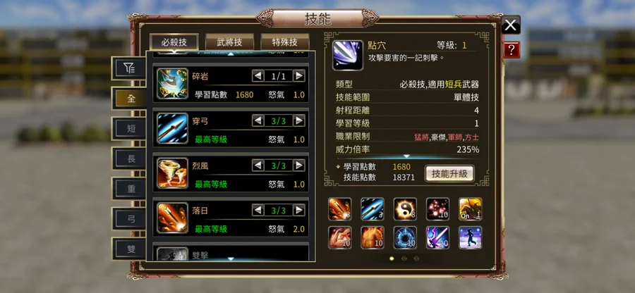 技能:落日 煉精 鐵腕 剛體 真勁