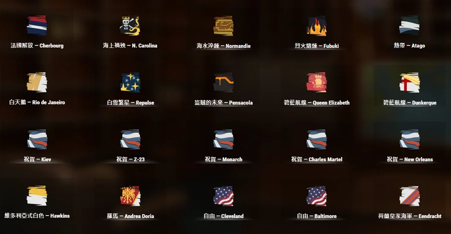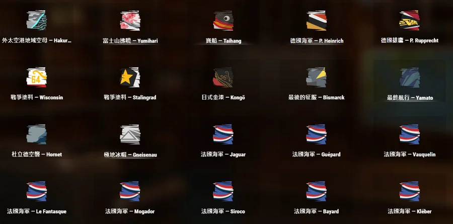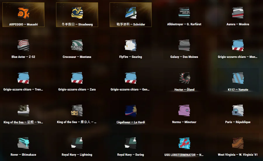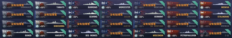 十階銀幣船42艘、十一階4艘、鋼船7艘(奧斯丁、敷島、斯維亞、朗納爾、勞利亞、瓦爾帕萊索)、絕版BA蒙大拿、威斯康辛和拉菲