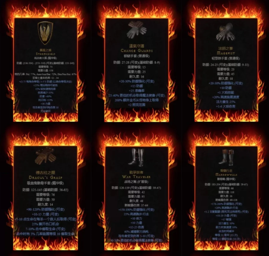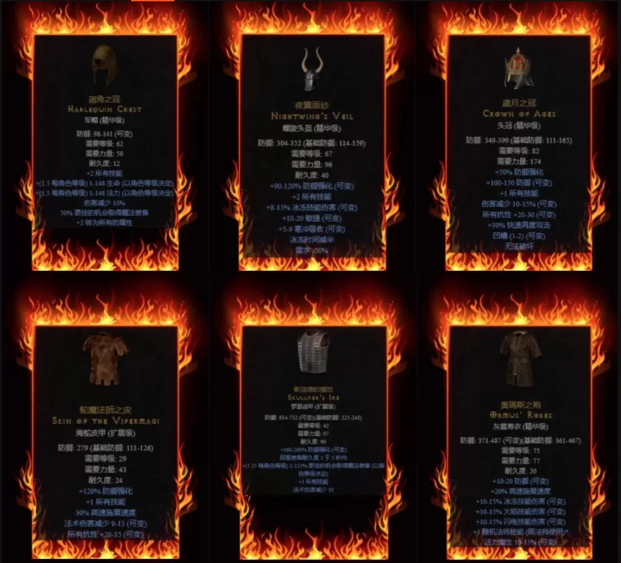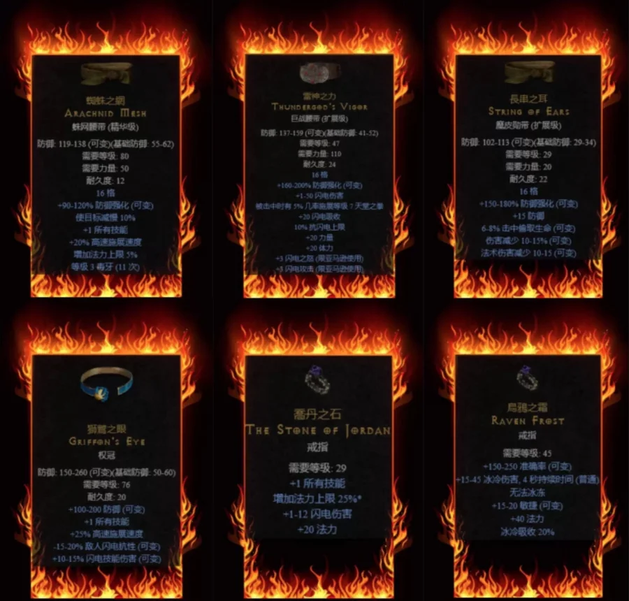 未辨識毀符、火炬、權冠、惡魔頭骨、蛛網束帶等獨特裝備