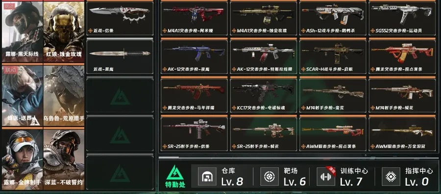 【特勤处】仓库Lv.8/训练中心Lv.7/靶场Lv.6