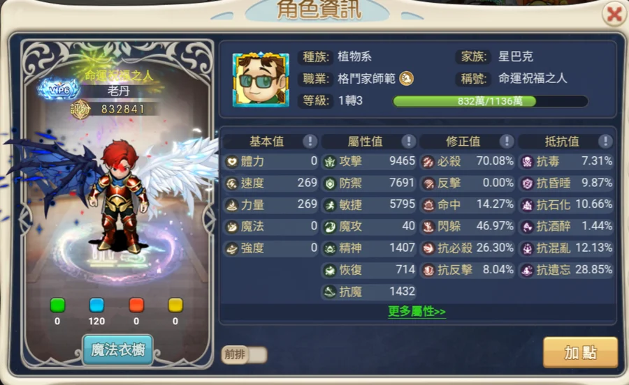 攻擊:9800防禦:7700敏:5800 必殺:70%閃避:51%