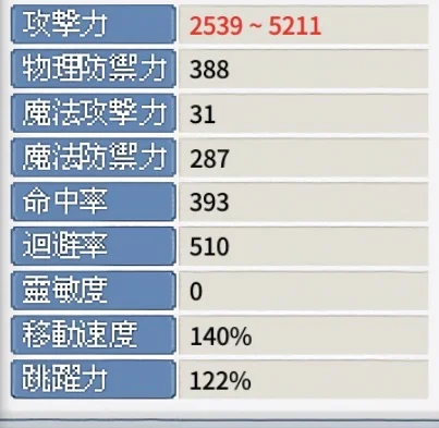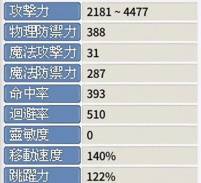 裝備 素質如圖