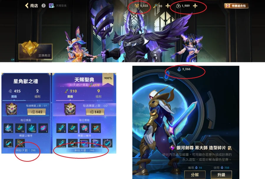 1. 高級天賜聖典還有200多天、裡面還有1900點數可用。