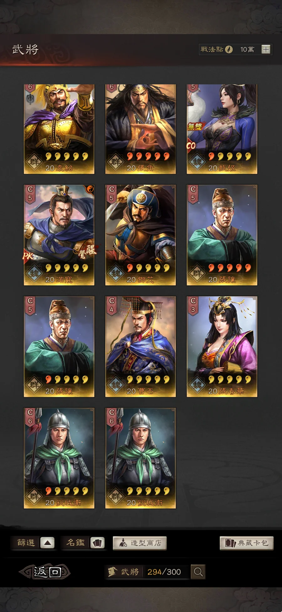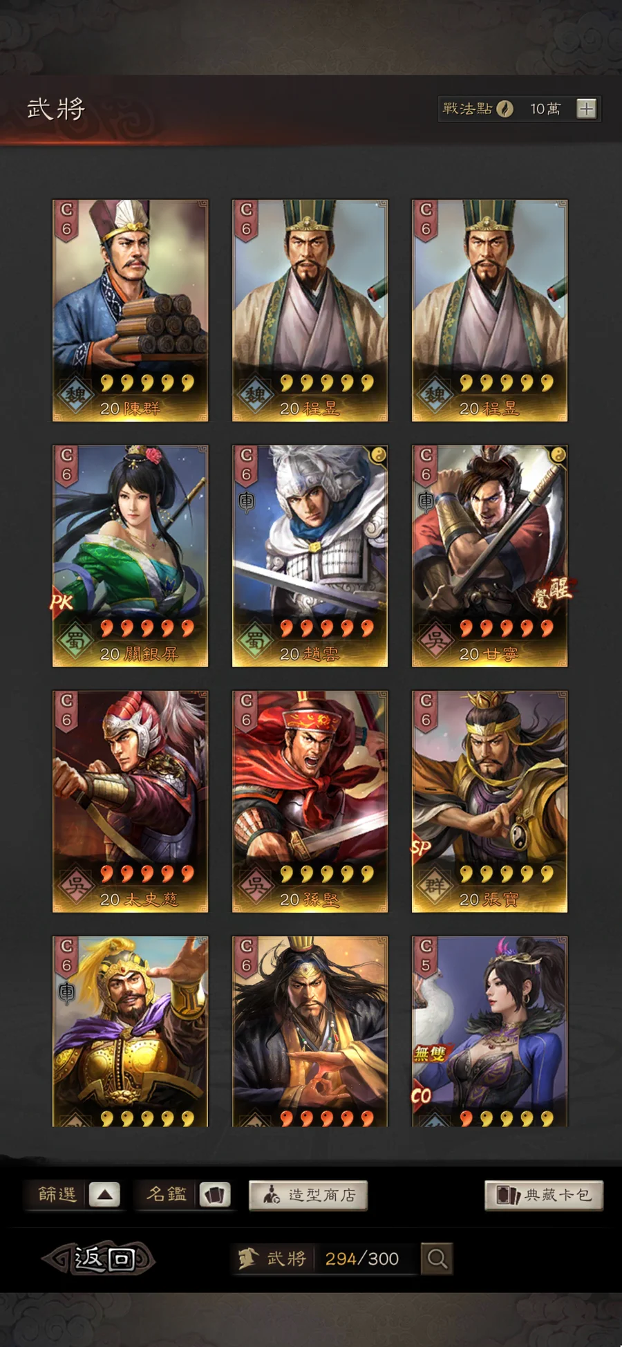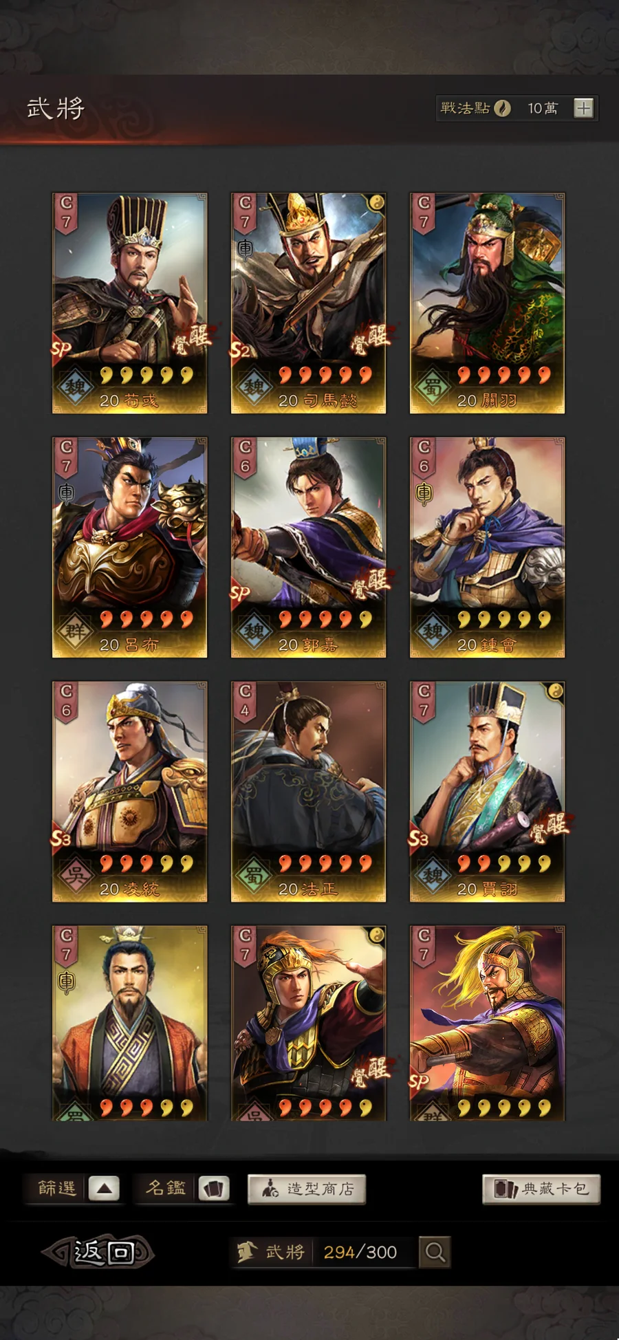 無懼.雄烈.無雙.武聖.天公.號令.昭烈.龍驤.虎踞