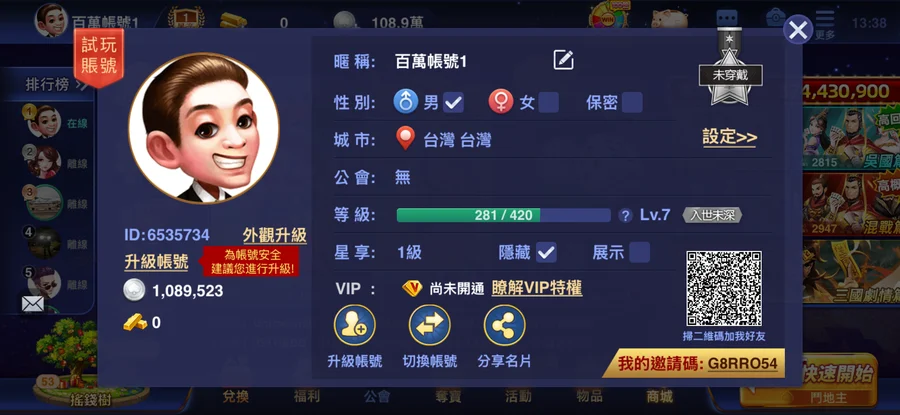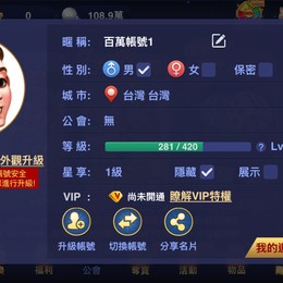 100萬銀幣星享等級1帳號 便宜賣
