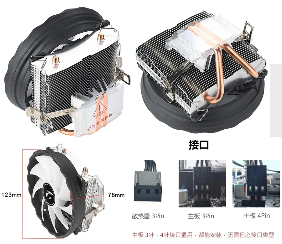 商品名稱:雙銅管下壓式CPU塔扇(12公分風扇)五彩