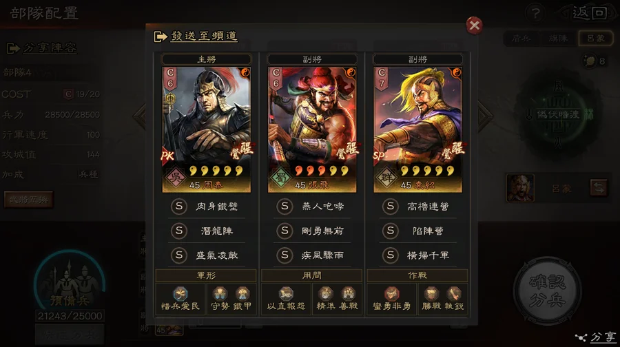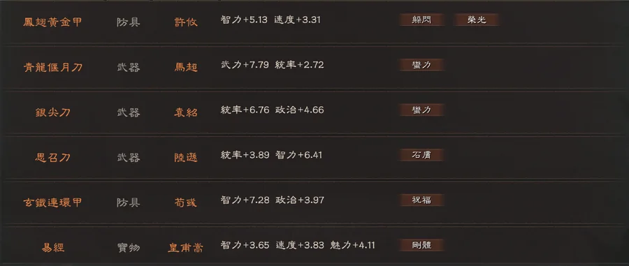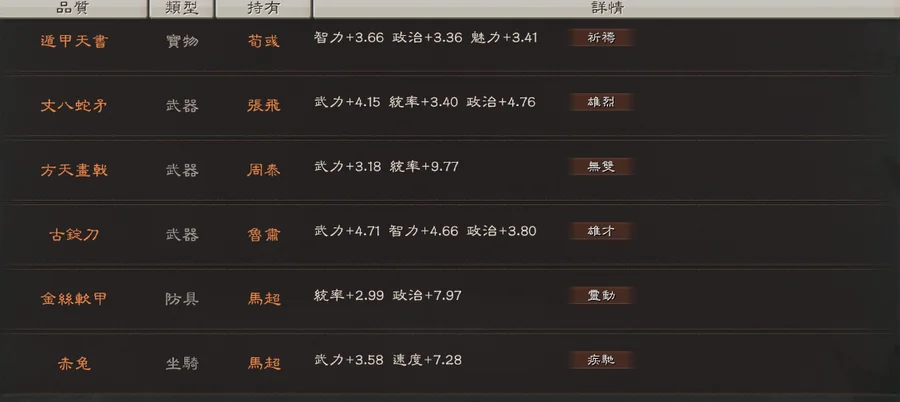 裝備:1剛體 1祈禱 1靈動 天公 雄烈 雄才 無雙