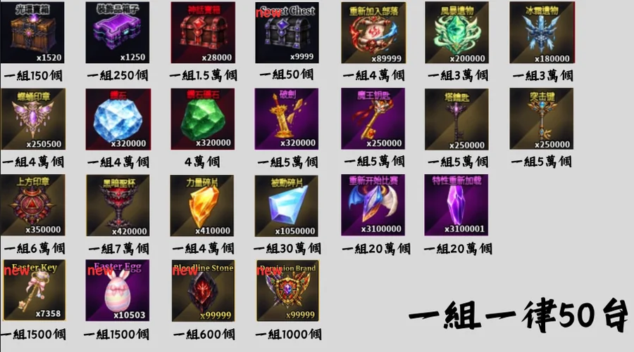 塔鑰匙(50000個)一組=50元