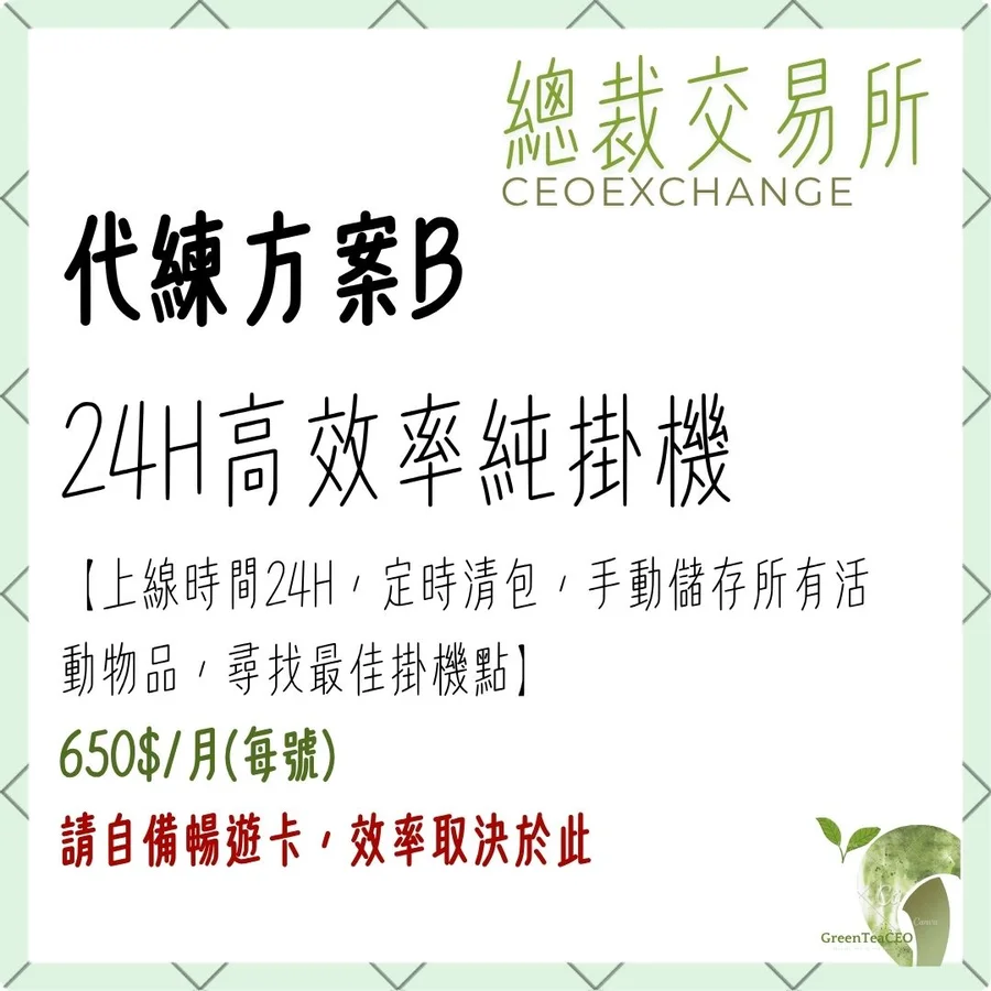1. 每日12點務必交付帳號進行掛機,逾時30分,計一日時間,當日不協助掛機。