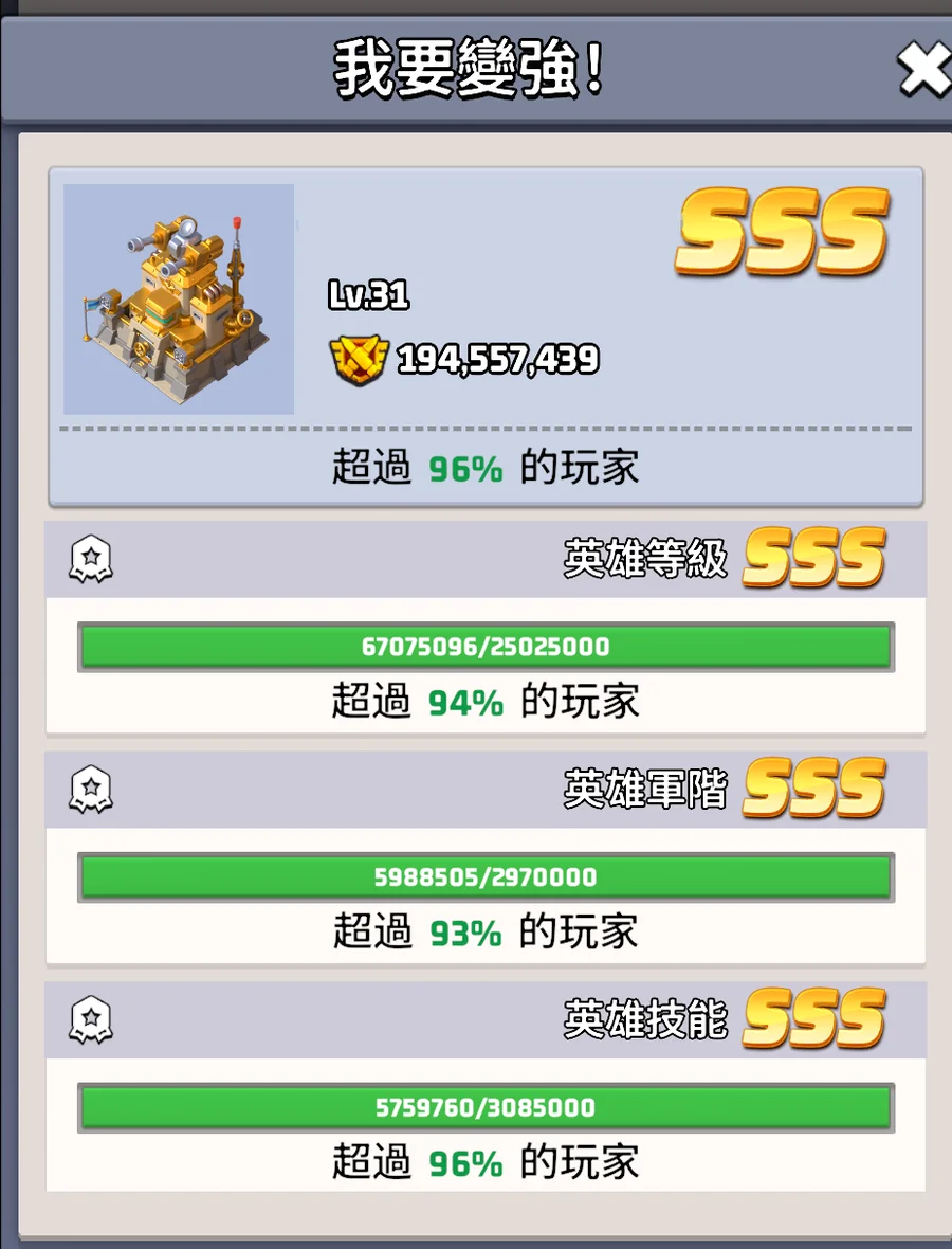 整體戰力 > 伺服器96%玩家