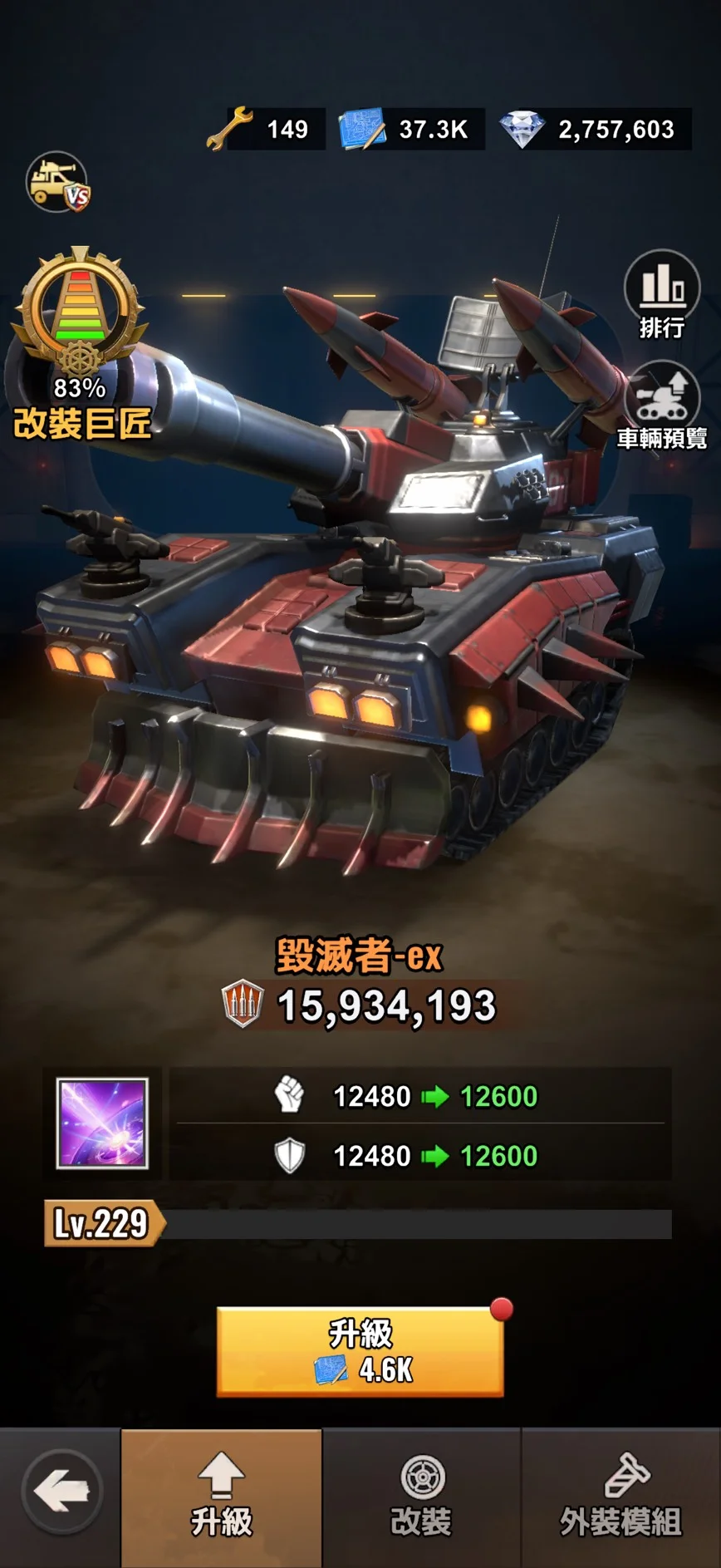 ✅ 高成熟改裝車 (毀滅者-ex ; Lv.9)
