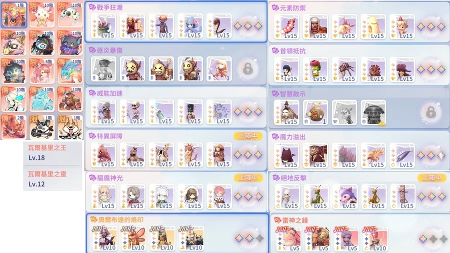 王卡 : 天波*1、惡波*1、英雄*1、海王*1、虎王*1、皮皮*1、月貓*1、死靈*1、大巴*1、凱美*1、紅鳥*3、卡崙*1、冰暴*1、時管*1、半龍*3、阿特*1、火王*1、烏賊*1