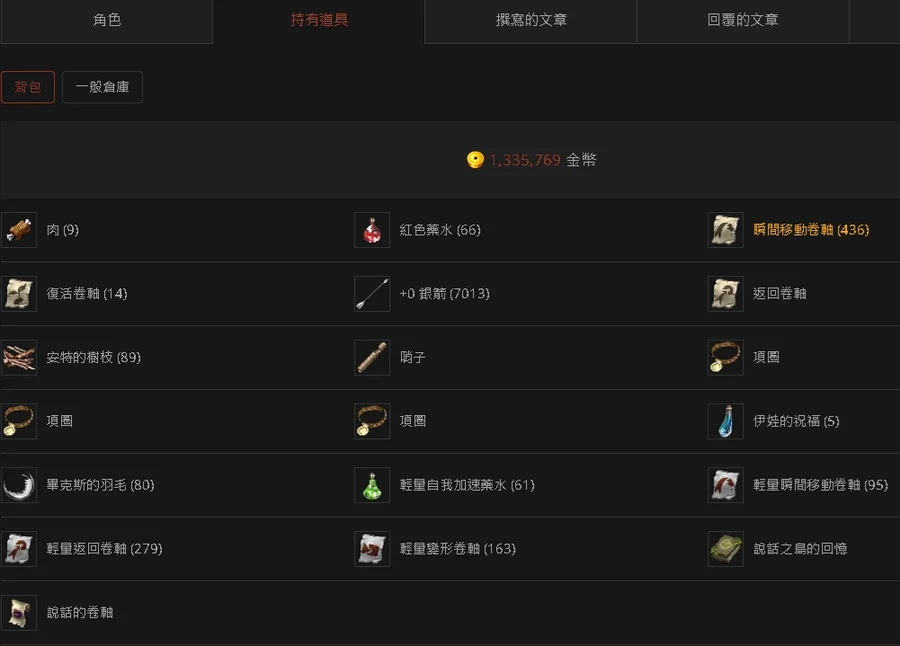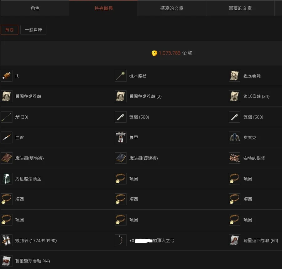 裝備,倉庫內容,本尊背包+掛賣背包,皆在圖檔內。