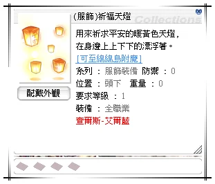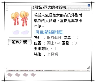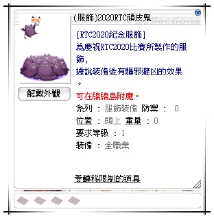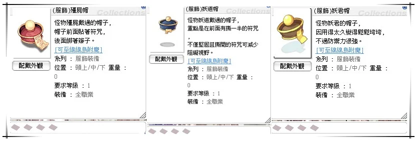---如圖,巴基利伺服器---此單為殭屍帽 = 50T另有妖道帽 = 50T妖君帽 = 70T圓筒頭盔 = 50T巨大的金鈴噹 = 70T祈福天燈 = 50T假面鬼披肩 = 70T2020RTC頑皮鬼 = 100T