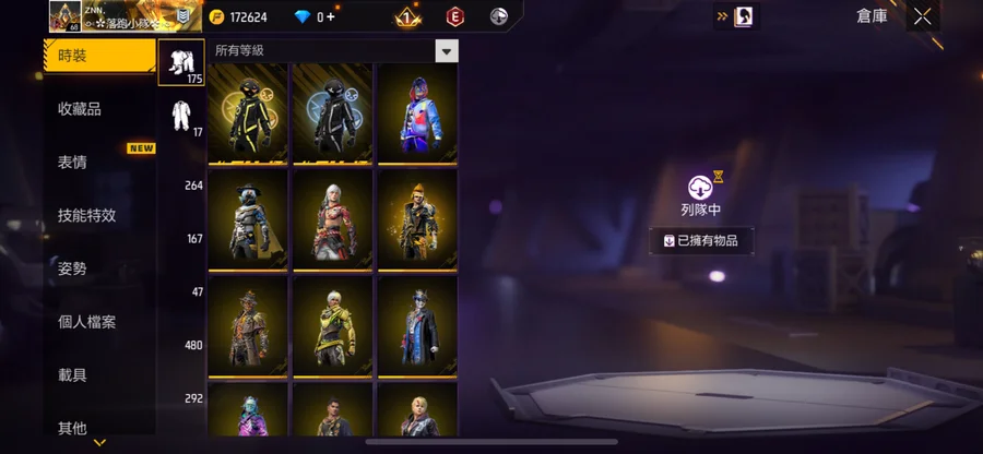 有興趣歡迎私聊 只綁電子郵件跟google 整組google帳號給你 服裝480 套裝170 塗裝489 紅2 金93 紫113