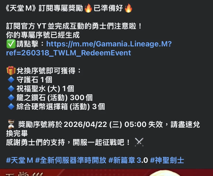 天堂m⋯⋯3.0板序號