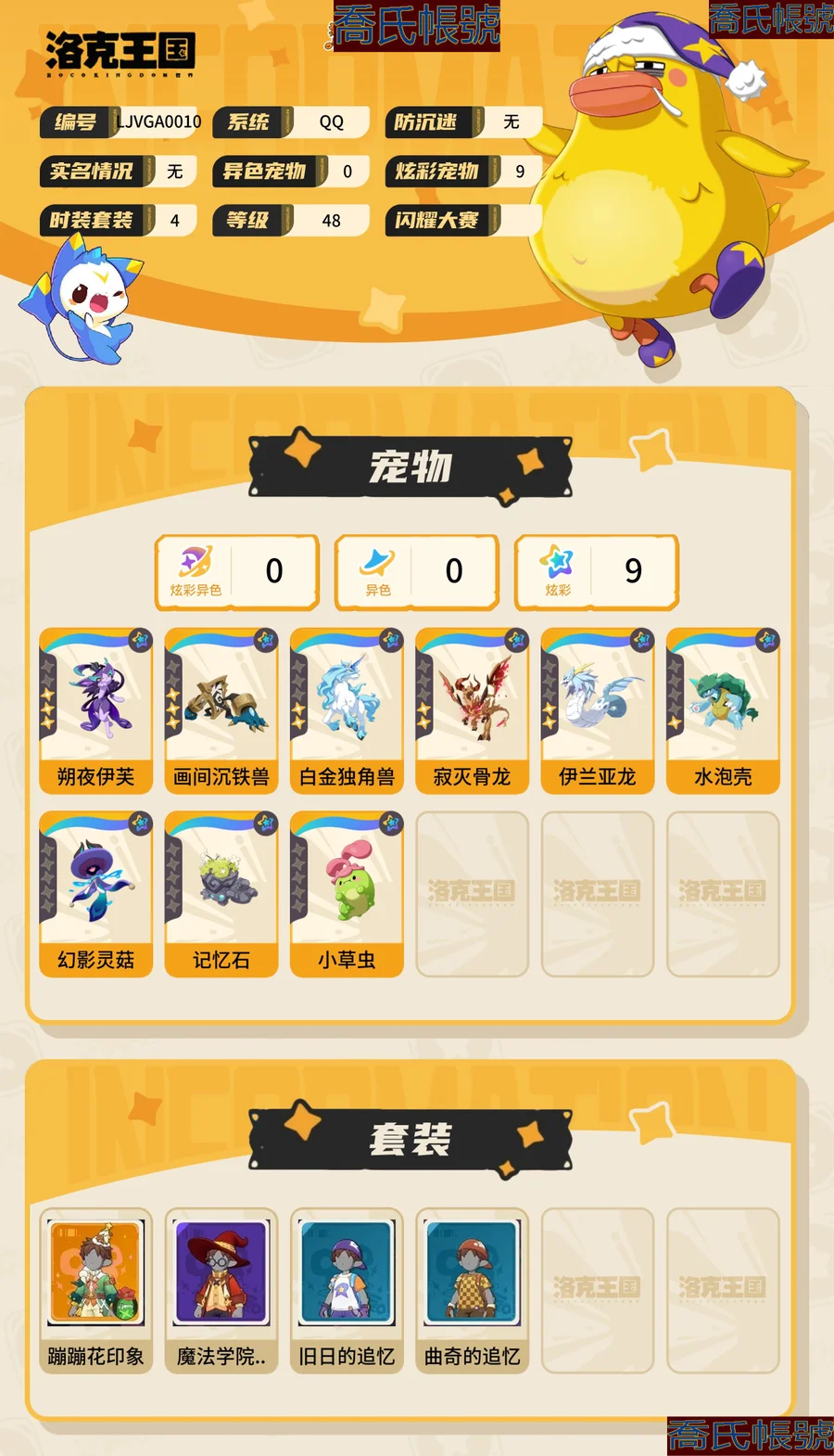 【OBLJVGA001042】男女主:男主,炫彩寵物數量:9,稜鏡球:1,許願星:295,洛克鑽:60,炫彩:朔夜伊芙(炫彩),畫間沉鐵獸(炫彩),白金獨角獸(炫彩),寂滅骨龍(炫彩),伊蘭亞龍(炫彩),水泡殼(炫彩),幻影靈菇(炫彩),記憶石(炫彩),小草蟲(炫彩),時裝套裝:蹦蹦花印象;詳情看圖【安卓QQ】【可買人臉包賠】【無防沉迷】【官方截圖】t0滿配光合齧合隊 滿配水花翼王隊 炫彩多而且性格屬性好 支援人臉新註冊的號玩了三天沒停肝