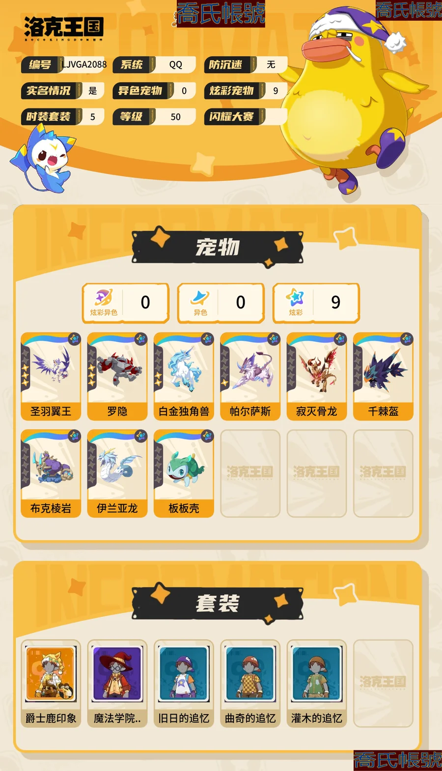 【OBLJVGA208842】男女主:男主,炫彩寵物數量:9,國王球:21,稜鏡球:4,許願星:263,炫彩:聖羽翼王(炫彩),羅隱(炫彩),白金獨角獸(炫彩),帕爾薩斯(炫彩),寂滅骨龍(炫彩),千棘盔(炫彩),布克稜巖(炫彩),伊蘭亞龍(炫彩),闆闆殼(炫彩),時裝套裝:爵士鹿印象;詳情看圖【安卓QQ】【不可二次實名】【無防沉迷】【官方截圖】**黑白炫彩獨角獸已全部配好橫掃pvepvp,已肝到50級,全地圖圖鑑解鎖2/3 上手無壓力 QQ是小號安全可換綁