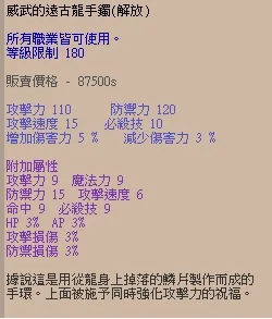 威武遠古龍手鐲 官方屬性 3+-