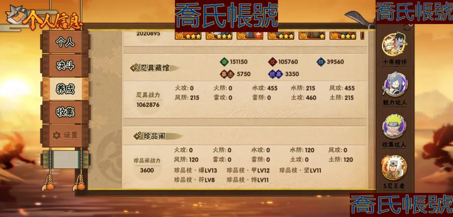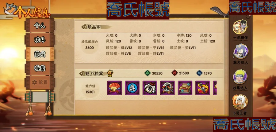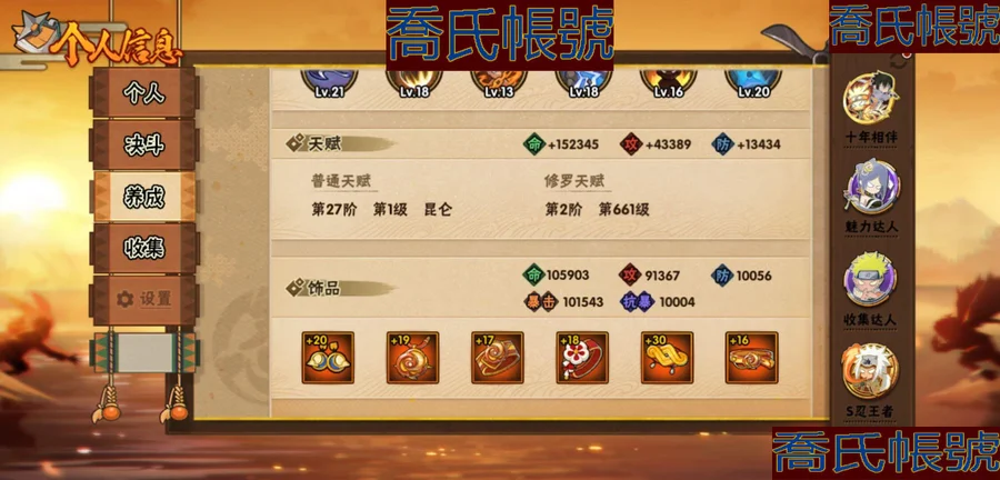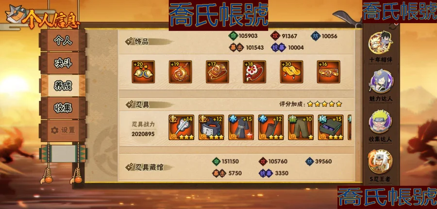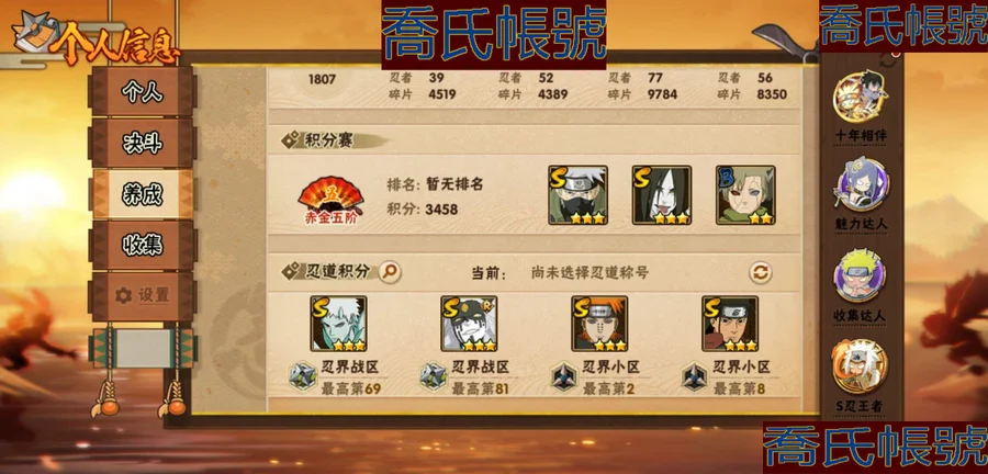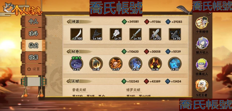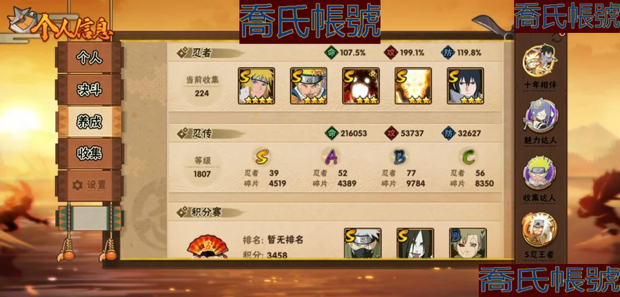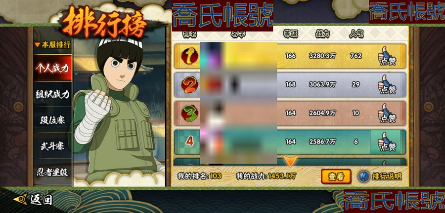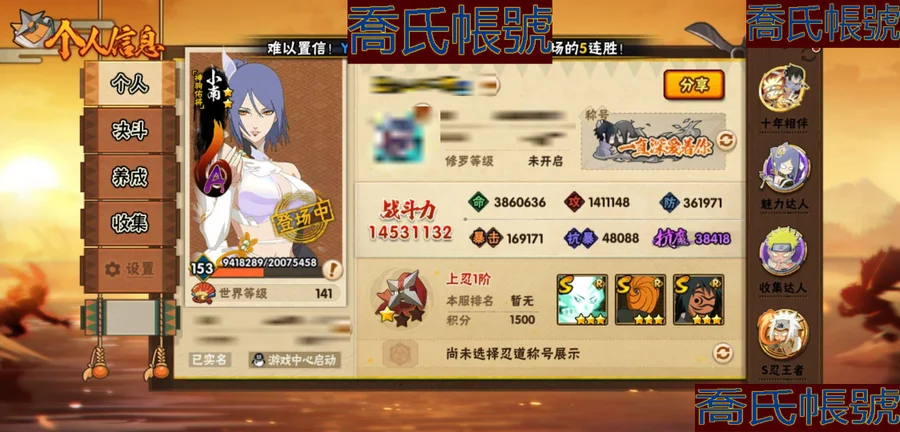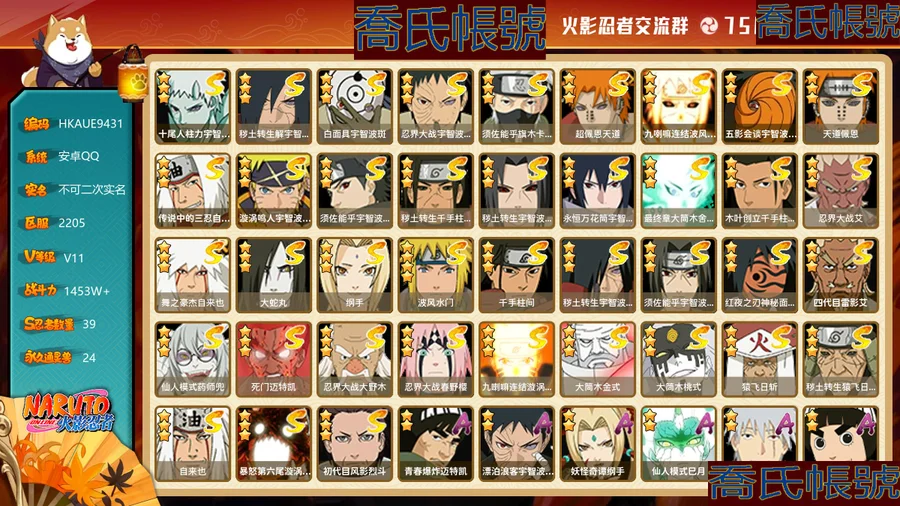 【OBHKAUE943142】S忍39個;A忍52個;時裝18個;通靈獸24個;秘卷45個;戰鬥力:1453W+;主場景1個;段位:上忍1階;本服排名:103;戰區排名:未上榜;VIP11級;S忍:十尾人柱力宇智波帶土,穢土轉生解宇智波斑,白面具宇智波斑,忍界大戰宇智波帶土,須佐能乎旗木卡卡西,超佩恩天道,九喇嘛連結波風水門,五影會談宇智波斑,天道佩恩,傳說中的三忍自來也,漩渦鳴人宇智波佐助,須佐能乎宇智波止水,穢土轉生千手柱間,穢土轉生宇智波鼬,永恆萬花筒宇智波佐助,最終章大筒木舍人,木葉創立千手柱間,忍界大戰艾,舞之豪傑自來也,大蛇丸,綱手,波風水門(4星),千手柱間,穢土轉生宇智波斑,須佐能乎宇智波鼬,紅夜之刃神秘面具男,四代目雷影艾,仙人模式藥師兜,死門邁特凱,忍界大戰大野木,忍界大戰春野櫻,九喇嘛連結漩渦鳴人,大筒木金式,大筒木桃式,猿飛日斬,穢土轉生猿飛日斬,自來也,暴怒第六尾漩渦鳴人,初代目風影烈鬥;A忍:青春爆炸邁特凱,漂泊浪客宇智波帶土,妖怪奇譚綱手,仙人模式巳月,幻之真容旗木卡卡西,忍界大戰李洛克,穢土轉生角都,忍界大戰日向寧次,四代目土影黑土,青年長門,忍者之路神秘面具男,穢土轉生迪達拉,志村團藏,宇智波止水,忍界大戰奇拉比,青年波風水門,青年艾,近松十人衛千代,須佐能乎宇智波佐助,新春限定小南,火影繼承人猿飛日斬,忍界大戰秋道丁次,穢土轉生猿飛阿斯瑪,萬花筒寫輪眼宇智波佐助,五代目水影照美冥,五代目雷影達魯伊,死司憑血飛段,疾風傳我愛羅(4星),迪達拉,飛段(4星),小南,神駒佑將小南,仙人模式漩渦鳴人,神威對決旗木卡卡西,邁特凱(5星),宇智波鼬,幹柿鬼鮫(5星),桃地再不斬,穢土轉生桃地再不斬,蠍(5星),緋流琥蠍,猿飛阿斯瑪(5星),桃式顯現漩渦博人,最終章日向雛田,六代目水影長十郎,不緣,宇智波泉奈,羈絆神農,夏日限定黑土,忍界大戰土臺(4星),初始形態機械鳴人,俠隱江湖大野木;通靈獸:忍犬,藍蛇,蛤蟆吉,忍龜,鐮鼬,砂之守鶴,猿魔,山椒魚,蛞蝓,蜃,蛤蟆仙人,鮫鯊,蛤蟆健,烏鴉,蛤蟆龍,蛤蟆廣,辛牙,夢貘,怒鬼爪,零尾,鷹,威裝須佐十週年,烏鴉夏日限定,豚豚;時裝:蜀面豪傑舞之豪傑自來也,狂野鮫鯊幹柿鬼鮫,百戰大蛇丸,宿命連結漩渦鳴人宇智波佐助,百戰波風水門,百戰宇智波鼬須佐能乎,百戰佩恩天道,千祥化福神駒佑將小南,太極靈韻日向花火武當宗師,緋櫻綻放春野櫻百豪,烈土霓裳黑土四代目土影,傳說的光芒波風水門,朱霞呈祥神駒佑將小南,血霧怪人幹柿鬼鮫,編織虛實宇智波鼬,神使之花小南新春限定,熊貓少女天天峨眉宗師,龍的傳人李洛克截拳宗師;秘卷:風遁·真空波,土遁·地動,土遁·土柱爆,土遁·巖落,水遁·水貽拿原,通靈·護手裡劍,風遁·斬空波,雷遁·地走,通靈·返手裡劍,水遁·水龍捲,火遁·鬼燈籠,水遁·水衝波,火遁·豪炎失,土遁·土流槍,雷遁·雷電擊,木遁·扦插之術,幻術·黑暗行之術,封印術·四肢重封印,忍體術·反,冰遁·凍雪,冰遁·燕吹雪,木遁·一字連柱,掌仙術·活,幻術·此處非之術,通靈·雷光劍化,禁術·陰愈傷滅,解術·散,火遁·裂炎彈,封印術·除魔,水遁·水盾,風遁·風殺陣,通靈·操手裡劍,影分身之術,解術·復,掌仙術·振奮,水遁·霧隱之術,水遁·水氣球,忍體術·御,忍體術·怒,忍法·蛙變之術,風遁·氣旋,雷遁·雷電門,忍體術·毅力,幻術·一葉障,秘卷·查克拉;主場景:博人傳;詳情看圖【2205】【安卓QQ】【不可二次實名】【官方截圖】在本服2組,可白嫖仙人自來也及組織限定皮膚